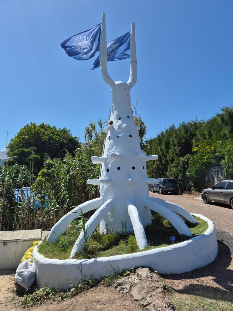 The old town of Punta del Este is on southern point of the peninsula, with the harbour on the west side. I walked around the point, the weather quite ominous with seriously threatening clouds, but thankfully it never rained. I stopped at a hippy shop to buy a fridge magnet, and was somewhat overwhelmed by the owner who could speak English, had been in South Africa and was adamant to take me right to the back of the shop and show me some maps, explaining the points of interest.