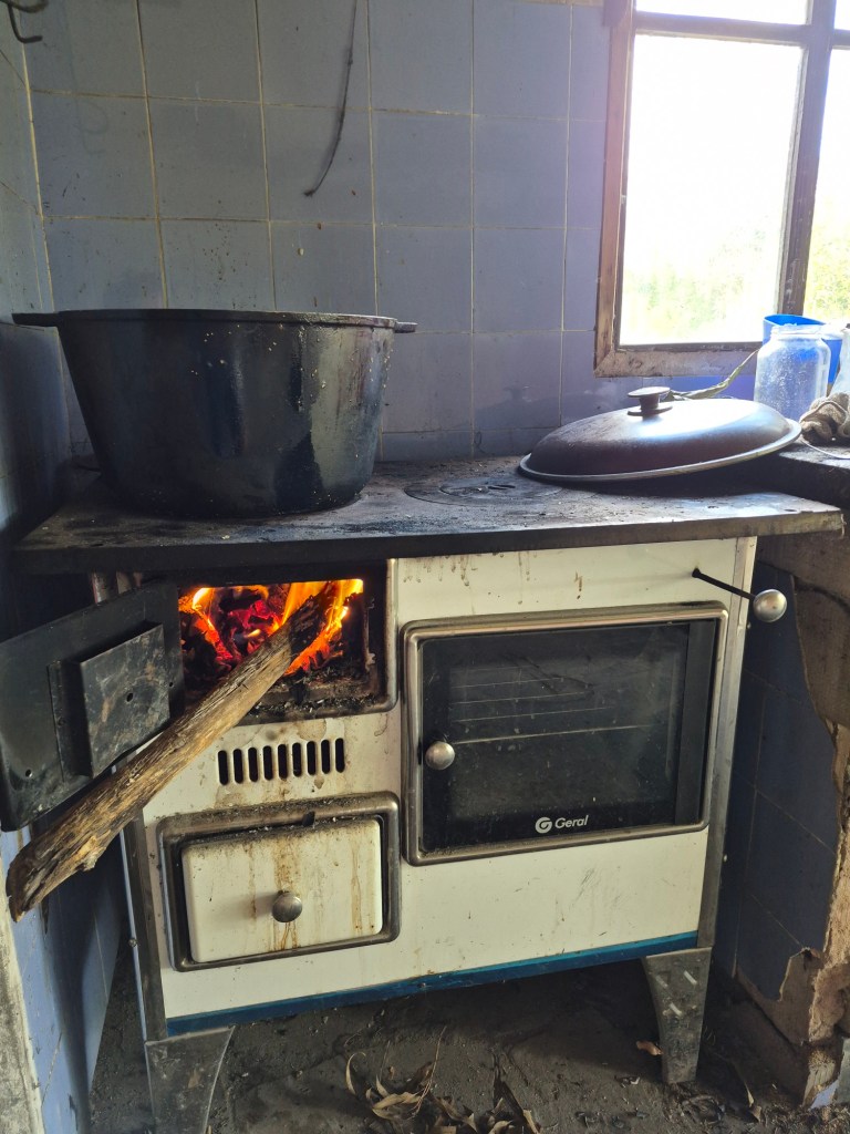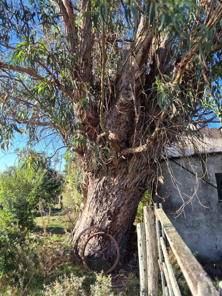 In the meantime, Maria was making fig jam and salsa sauce and boiling bones to extract gelatine that she bottled and sold. This she did in her garage on a woodburning stove, sitting in front of it, continuously feeding the flames with pieces of wood. One day she asked me to gather wood for the stove, using the wheelbarrow and finding wood any place around the house. Quite an easy job, as there are many huge trees on the property and lots of dry wood lying around. There are also a few huge ombu trees around the house, which I loved – beautiful from one angle, hollowed out on the other side. Their fibrous material is of course no good as firewood.