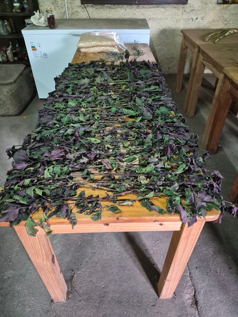 Workaway volunteer hours are normally 5 hours a day, so I assumed my work had been done after cleaning up after lunch, but Maria always had some extra things I had to do in the afternoons, normally involving the herbs, which I was keen to learn about and I happily obliged. One day I had to harvest purple basil, as it had to be cut in the heat of the day. On another day I had to put stickers and her logo on packets, fill them with that specific herb, weigh them and seal them with an electric sealer. As we worked, she explained the importance of having the right attitude and positive energy when handling herbs; that we had a chakra in the middle of our palms, and that the energy was transmitted in that way. She also mentioned that not all volunteers were able to work with the herbs, which I took as a compliment. She had studied medicinal herbs many years earlier, and was very intuitive and knowledgeable, explaining the properties of the herbs that we were packaging.
