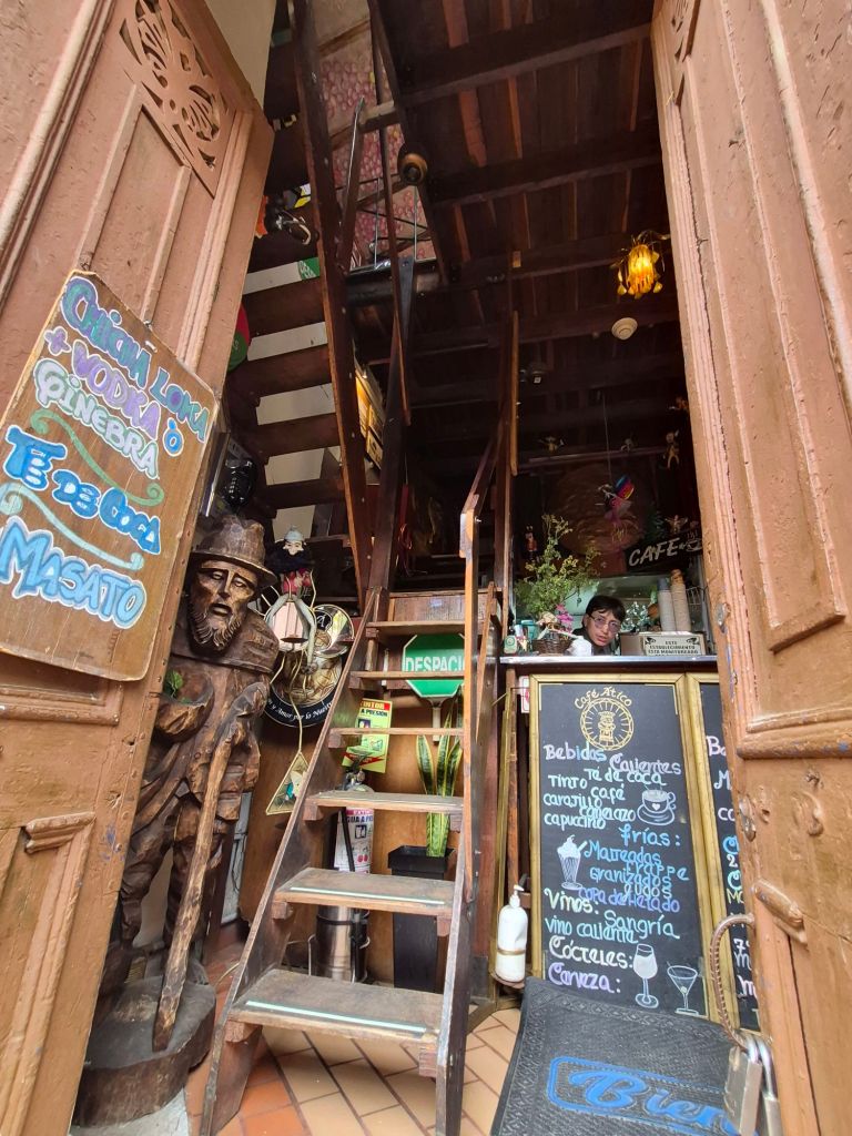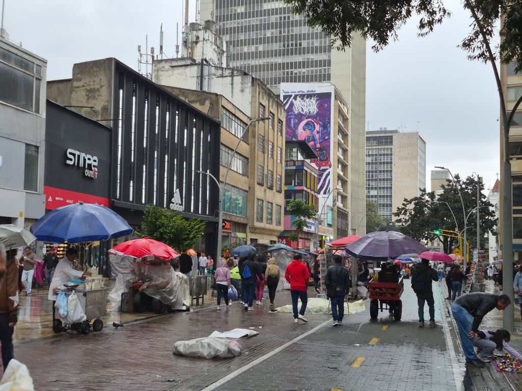 Hotel Artistico, where I had originally booked, has an old-world feel to it, right next to the historical centre, and after settling in, I took to the streets. It was Sunday, and there were street markets everywhere. All my woes of the previous night forgotten, I was walking around with a huge grin, enjoying the hustle and bustle, favourably impressed with Bogotá. It started to rain, but umbrellas and covers came out, and everything carried on. Angela, a friend of mine in South Africa who is Colombian, had given me some recommendations of things to do and places to visit, so I meandered along, passing the Plaza de Bolivar with its beautiful cathedral and other old buildings, working my way to the Botero museum, which is free.