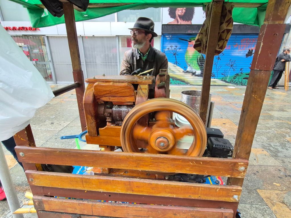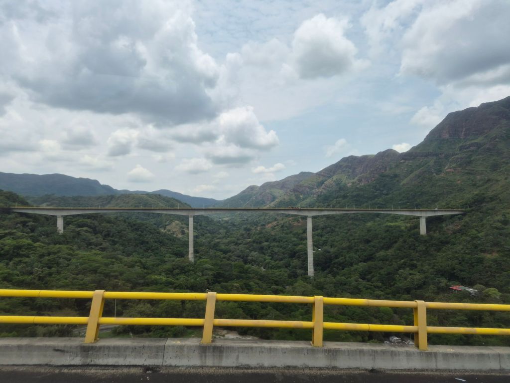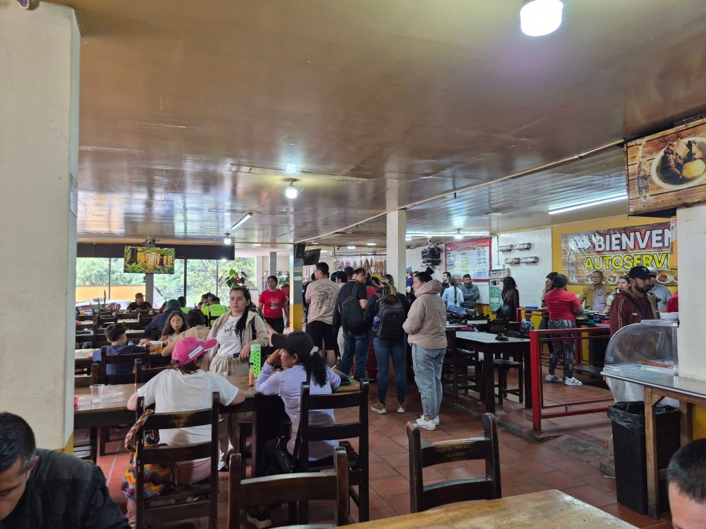 The road to Armenia is interesting in that for a certain stretch it is dual carriage, with the way there following the old, winding pass, and the way back going through tunnel after tunnel and many viaducts. Naturally the travelling time back to Bogotá is faster, but not as scenic. The bus stops at a restaurant next to the road, and evidently one can get a free meal, but the queue was long and I couldn’t figure out how to do it, so I just ate the delicious lunch that Xio had packed for me.