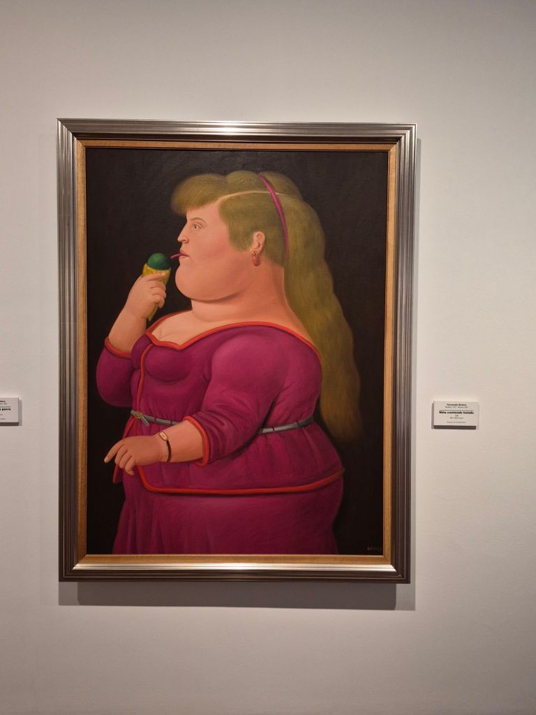 Fernando Botero Agulo was a Columbian artist and sculptor, who was born in 1932 and died in 2023 in Monaco. He was considered the most recognized artist from Latin America in his lifetime, and his style became known as Boterism. In 2000 he donated 123 of his own pieces and 85 artworks from his private collection to the Museo Botero in Bogotá. His paintings have a way of making one smile – exaggerated bodies, small mouths, funny expressions, everyday occurrences from an ironic point of view.