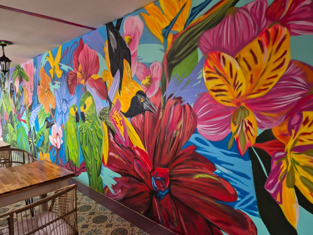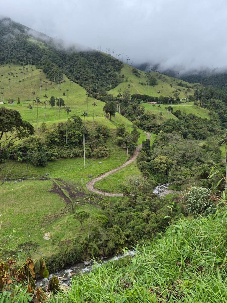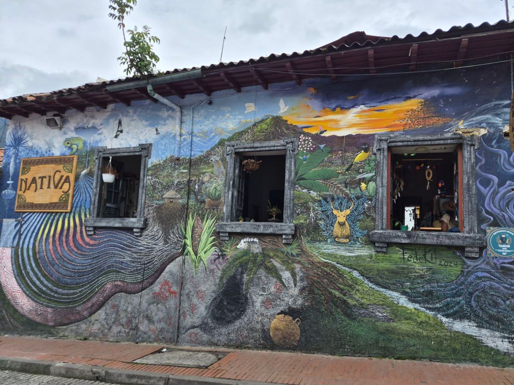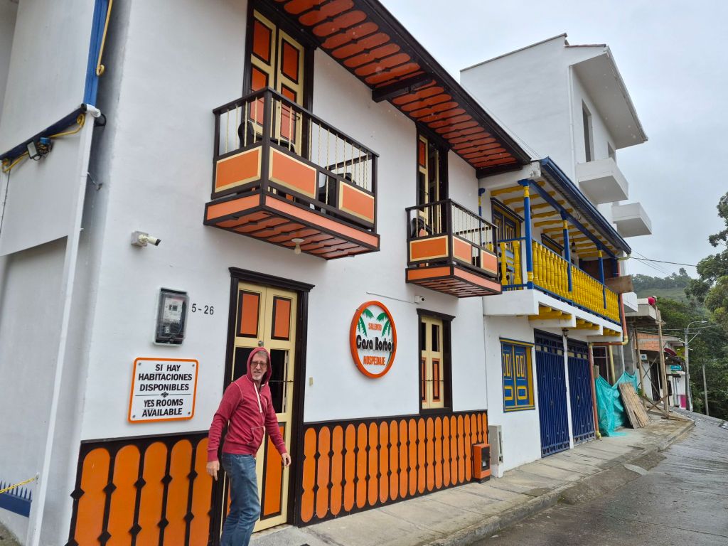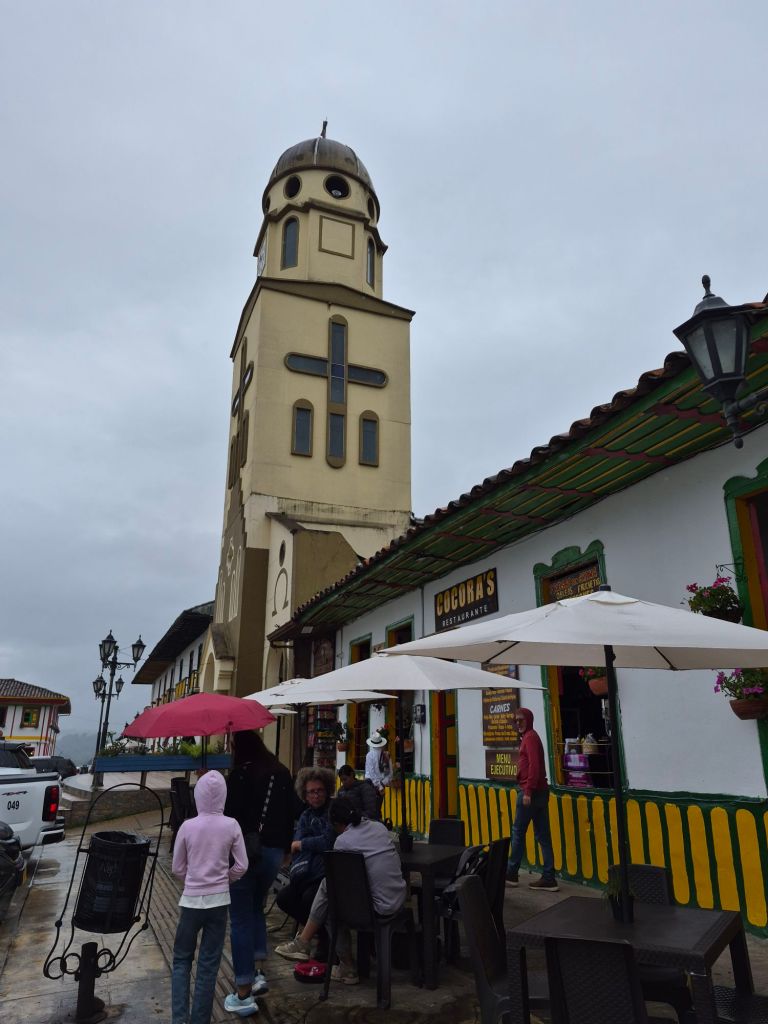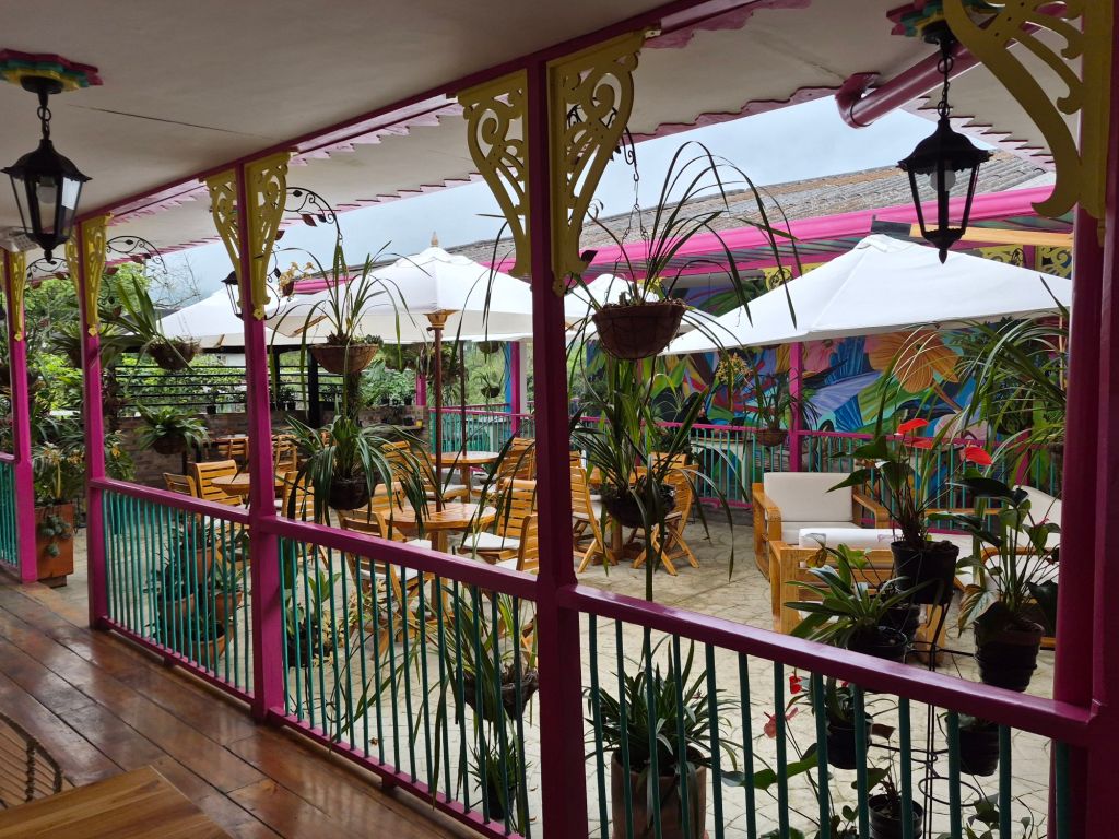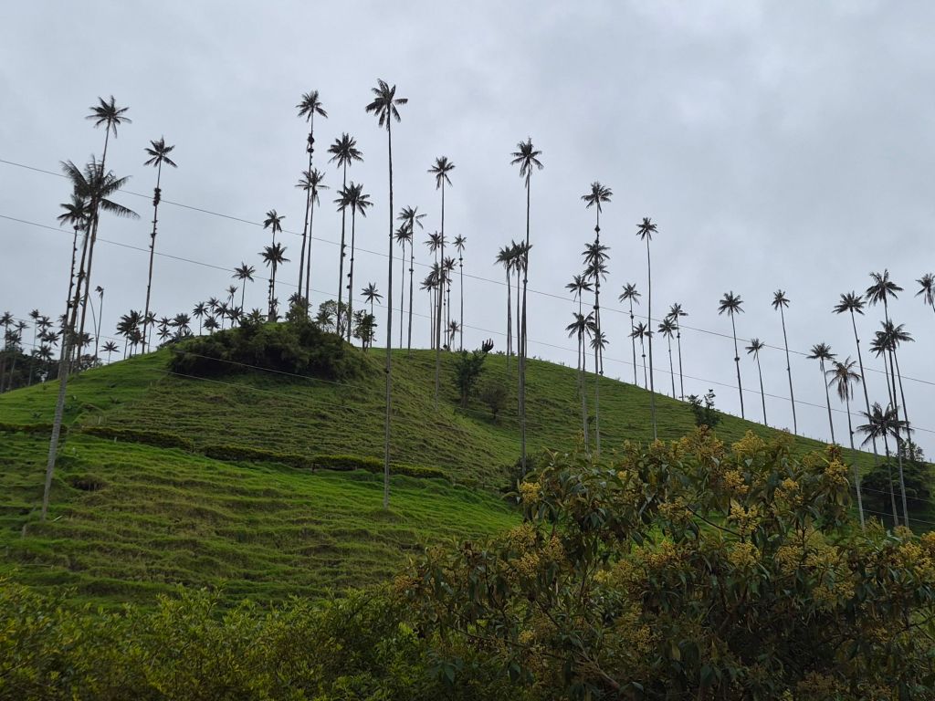They took me to Solento later that morning, one of Colombia’s main tourist destinations, and we walked up the Valle de Cocora (Cocora Valley), where the very tall Quindío wax palms (Ceroxylon quindiuense) grow, the national tree of Colombia – a sight to behold. We walked through the town, taking pictures and having lunch at a restaurant which was in an old house, beautifully restored. I bought some coffee – it was the coffee region after all – which I now have to carry with me until December.