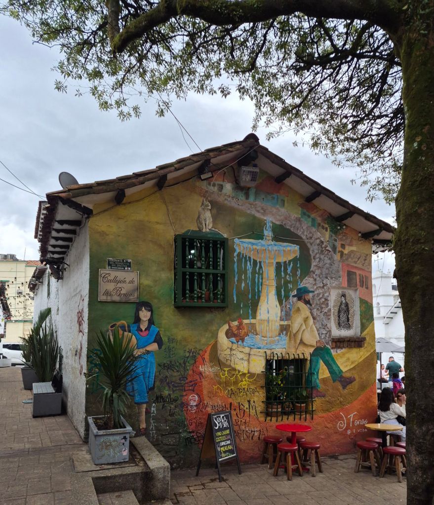 I walked further up the hill to Plazoleta Chorro de Quevedo, a plaza in the heart of the historical center, which is the place where the city was founded in 1538. The plaza was rebuilt in 1969, based on some old images and models, and a new well and church were built. Some streets around it are narrow and cobbled with quaint bars and restaurants, and the graffiti is very artistic.